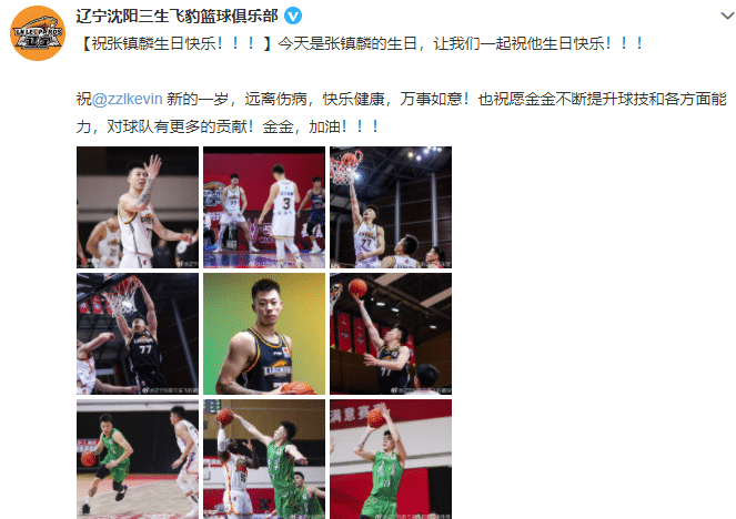 辽篮官方给张镇麟送上祝福:“【祝张镇麟生日快乐!!!】今天是张镇麟的生日,让我们一起祝他生日快乐!!!祝张镇麟新的一岁,远离伤病,快乐健康,万事如意!也祝愿金金不断提升球技和各方面能力,对球队有更多的贡献!金金,加油!!! ”