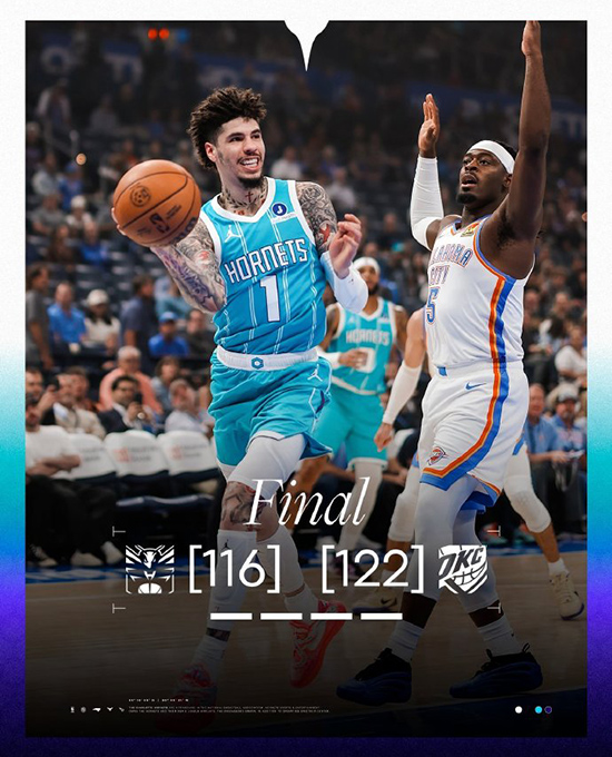 360直播吧讯 北京时间10月10日 NBA季前赛,俄克拉荷马雷霆对阵夏洛特黄蜂。半场雷霆64-57黄蜂,最终雷霆122-116黄蜂。