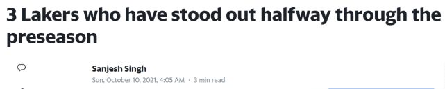 360直播吧10月10日讯 本赛季,湖人一共安排了6场季前赛,如今他们已经打完其中3场,全部告负。北京时间10月10日,NBA记者Sanjesh Singh表示,湖人虽然遭遇三连败,但队内仍有三名98后球员的表现出色,给人们留下了深刻的印象。