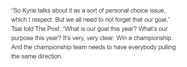 欧文不愿接种疫苗,可能导致缺席所有主场比赛。很多球迷好奇篮网老板蔡崇信作何感想,就在今天,他也正式发声了。