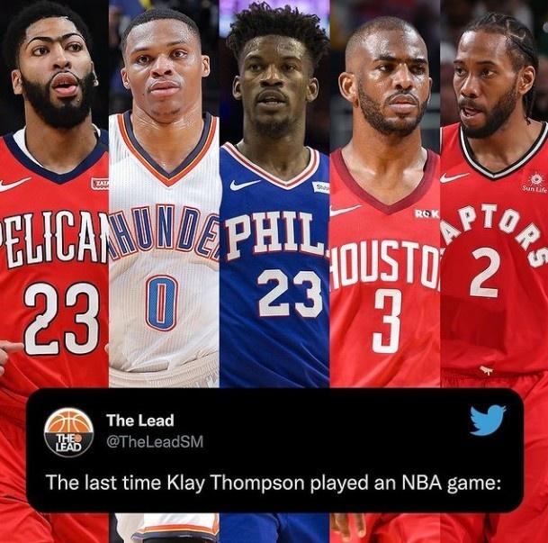 自从2019年6月14日以来,汤普森还没参加过一场NBA比赛,他缺席了两年多的时间,正在找回自己的状态。美媒也感慨时光飞逝,晒出汤普森上一次出现在NBA赛场时一些球星的状况,当时,浓眉还在鹈鹕,威少还在雷霆,巴特勒还在76人,保罗还在火箭,而小卡还在猛龙。