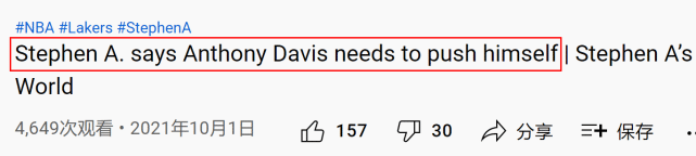 史密斯在节目上说道:“我同意,AD(浓眉)需要被激励,但不该由威斯布鲁克来激励,安东尼-戴维斯需要被安东尼-戴维斯所激励。他要搞清楚,这支湖人是要干嘛的?是要夺冠,这支老将组成的球队是要现在赢下冠军的。”