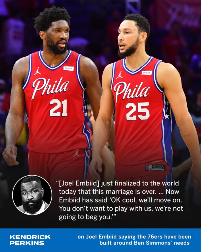 对于恩比德的言论,名嘴帕金斯表示:乔尔-恩比德刚刚向全世界宣布,他与本-西蒙斯的关系结束了,恩比德的意思是‘好吧,我们继续前进。如果你不想和我们一起打球,我们不会求你的。