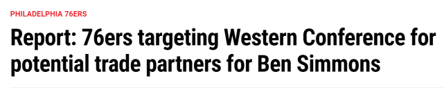 这意味着,76人不愿将西蒙斯送往东部球队。美媒表示,76人本赛季的目标是打进总决赛,而把西蒙斯送给东部球队,可能会让球队赛季的未来更加艰辛。上赛季,76人的常规赛战绩排名东部第一,但他们在东部半决赛被老鹰淘汰。西蒙斯在罚球线上的糟糕表现,是76人落败的一大因素。