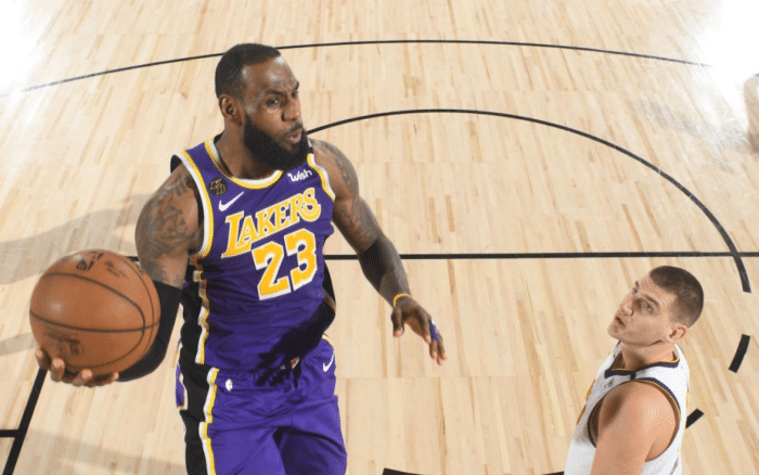 360直播吧9月27日讯 ,一年前的今天,詹姆斯带领洛杉矶湖人在西部决赛第五场击败丹佛掘金,从而以4比1的大比分挺近总决赛。在这场大战中,勒布朗全场出战多达40分钟,25次出手高效命中其中15球,砍下38分16板10助攻的豪华超级三双。尤其是第四节个人独得16分,在比赛最后阶段,詹姆斯手感火热犹如天神下凡,连续投进高难度的中距离和远投三分,几乎靠一己之力打花了掘金,把最后的悬念给彻底打没了。