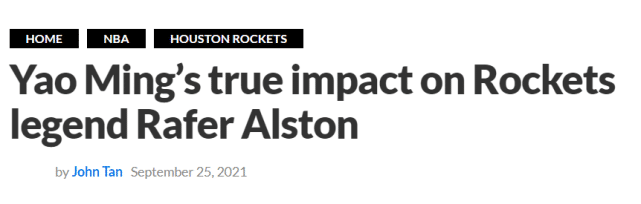 360直播吧9月27日讯 近日,前NBA球员阿尔斯通参加了一档节目的采访,在采访中,这位昔日的“街球王”谈到了前队友姚明。