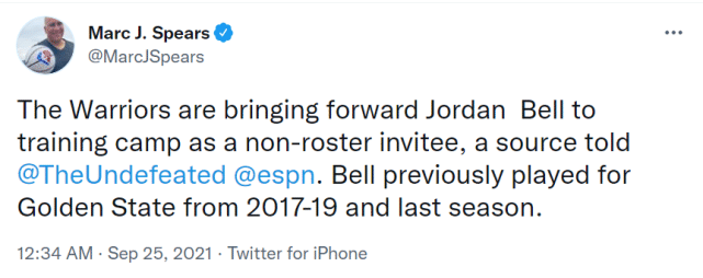 26岁的乔丹-贝尔,上赛季效力过奇才和勇士,一共只打了6场比赛。场均2.5分4篮板。贝尔的生涯起点就是勇士队,曾在2018年随队拿过总冠军。他能带来前场的阵容深度。
