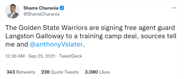 29岁的加洛维上赛季效力于太阳,场均出场11分钟,能得到4.8分。加洛维个人表现最好的一季是2019-20赛季,当时效力活塞的他场均10.3分,三分命中率40%。加洛维可以增加球队后场的阵容深度。