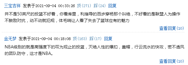 对于罗德曼吐槽现代NBA的打法,也不泛认同的网友,不过在一些网友看来并不是50英尺的投篮不好看,而是不鼓励对抗、动不动就吹罚犯规以及体毛哨等问题,让篮球失去了应有的魅力,因为在很多人的学生时代,他们接触篮球时,甚至在听到篮球的介绍时,都是标明了篮球属于“剧烈运动”,强调的是身体对抗等等,可见现代NBA的篮球规则引起争议,还被许多球员喷现在的NBA太软了,不是完全没有原因的。
