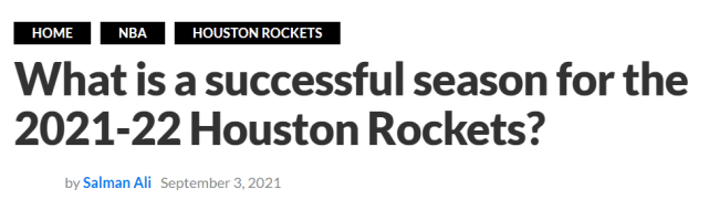 360直播吧9月04日讯对于上赛季还在联盟垫底的火箭来说,总冠军似乎有些遥不可及。那么,2021-22赛季的火箭,究竟怎样才算获得成功?北京时间9月3日,美媒clutchpoints列出了六大要素,来评估火箭新赛季是否取得成功。