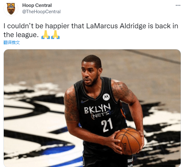 上赛季被马刺买断后,阿德为篮网打了5场比赛,担任球队首发内线,场均上场25.9分钟能够拿到13.5分4.5篮板和1.9助攻1.1盖帽,仅为篮网打5场,对阵湖人赛后,他宣布因心律不齐的心脏问题而退役;如今阿德重返篮网,美媒Hoop Central发推:为阿德重返联盟而高兴。