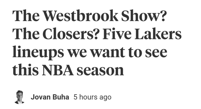 360直播吧9月03日讯 ,湖人跟队记者Jovan Buha对球队现有球员进行解析,列出了五套可能在新赛季派上大用场的轮换阵容。这五套阵容适用于不同的时段和状况,也体现了目前这支湖人强悍的阵容深度。