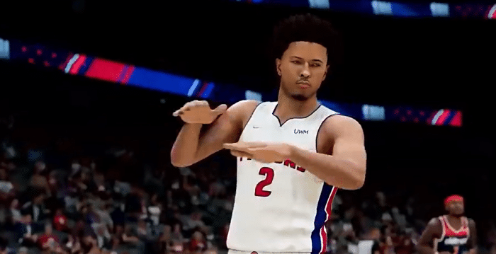 虽然只是一款游戏,但是与NBA官方合作的,多位球星都是忠实粉丝,会在休赛期和养伤阶段玩这款游戏,能力值高低关系着另一个官方对他们能力的认可,休赛期有多位球星转会,所以这款游戏也适时地更新出了球员新的状态,比如乌布雷身穿黄蜂球衣在场边摆“收枪”手势的画面!