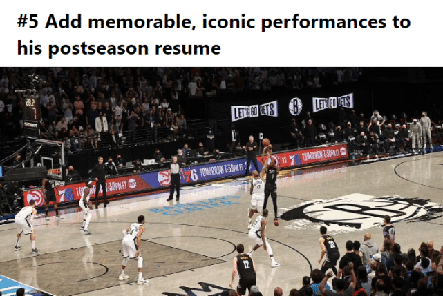 美媒认为,杜兰特生涯至今最重要的一个进球,是2017年总决赛G3的制胜球。当时的那个球,帮助勇士将总比分从2-0扩大到3-0,最终勇士4-1击败骑士夺冠,杜兰特获得总决赛MVP。除了那个球,上赛季抢七为篮网投进的绝平球也很出色,但遗憾的是球队加时输掉了比赛。美媒指出,杜兰特需要有更多这样的季后赛瞬间。