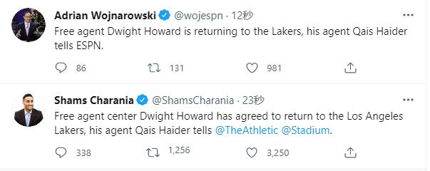 同样来自于Shams爆料,霍华德决定一年合同回到湖人,这位20年夺冠的功臣,短暂逗留76人又回归了!事实上当时他就想续约湖人,但最终被76人率先开出报价。现在的魔兽愿意拿底薪,愿意打替补,是个不错的角色球员,他的回归能提升球队防守,更重要的是让浓眉安心打四号位,上赛季场均7分8.4篮板!