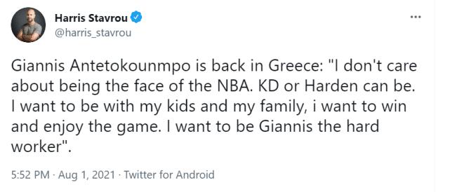 360直播吧讯 北京时间8月2日,据美国记者Harris Stavrou报道,雄鹿球星字母哥目前已经回到希腊,字母在今日接受了媒体采访,谈到了联盟门面的问题!