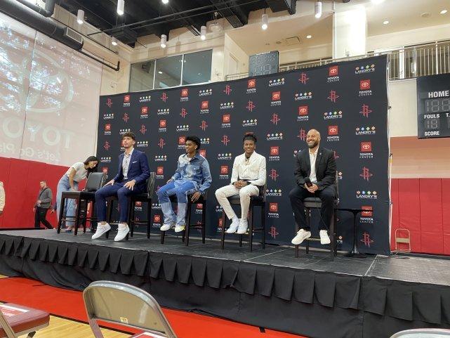 火箭今年在选秀大会上用榜眼签选中贾伦-格林,用交易来的16号签选中申京,还用23号签选中加鲁巴,24号签选中克里斯托弗。斯通对选秀的过程非常满意,并在媒体面前挨个点评了身边的三位年轻人。