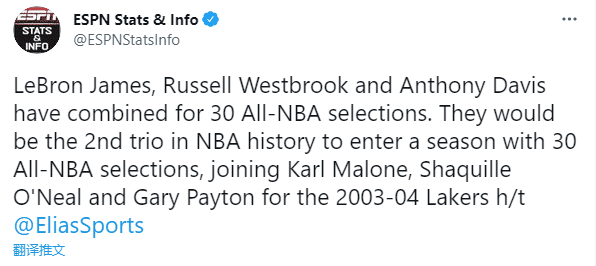湖人完成休赛期第一笔大交易,湖人引援威少引热议,他们不仅打造超级三巨头,而且再次打造NBA史上第二个拥有30次进入NBA最佳阵容的三巨头,湖人曾在03-04赛季打造奥尼尔+马龙+佩顿这样的豪阵。