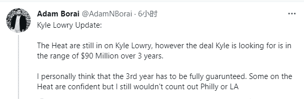 洛瑞和猛龙的合同已经到期,今年休赛期他将成为完全自由球员,湖人、热火、费城和鹈鹕等队都想引援这位35岁的老将;但现在洛瑞想要一份3年9000万美元的大合同,这意味着湖人要提前退出洛瑞争夺战,因为湖人的薪资空间有限。