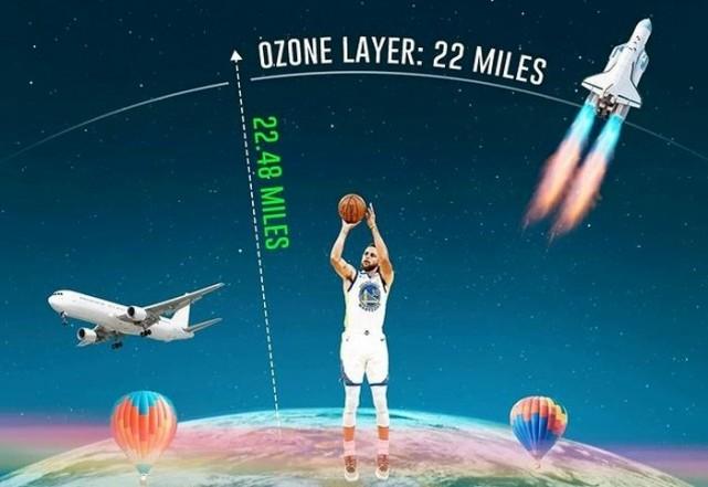360直播吧讯 北京时间7月25日,美媒clutchpoints晒图公布了一项有趣的数据,勇士球星斯蒂芬-库里生涯投篮命中的总距离达到22.48英里(约36178米),而地球表面的臭氧层高度大概是22英里(约35405米)。美媒调侃,库里的进球总距离已经可以冲破臭氧层了。
