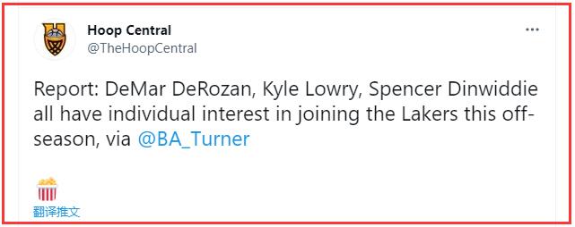 360直播吧讯 据美国媒体报道,包括洛瑞、德罗赞和丁维迪等后卫,都有意在今夏加盟湖人队,联手詹眉冲击总冠军。
