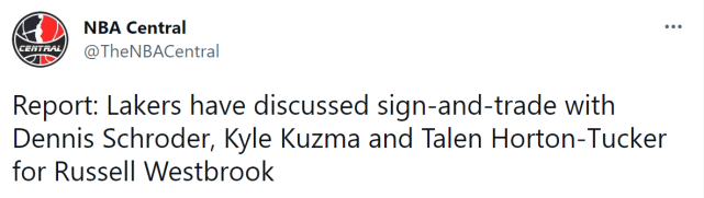 360直播吧讯 北京时间7月22日,据名记斯皮尔斯报道,湖人有兴趣通过交易得到威少,他们已经讨论过用施罗德、库兹马和霍顿-塔克打包交易威少,其中施罗德需要先签后换。威少还剩两年合同,下赛季的薪水是4421万美元,如果交易达成,威少将超过詹姆斯(4118万)和浓眉(3536万),成为湖人年薪最高的球员。斯皮尔斯还报道称,保罗也在湖人和詹姆斯感兴趣的名单上。