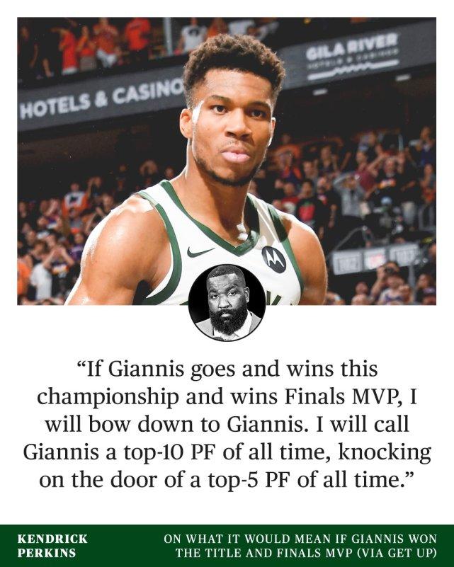 除了皮尔斯和巴恩斯,帕金斯也在最近一期节目中谈到字母哥的历史地位。帕金斯表示:“如果扬尼斯赢得了今年NBA总冠军并获得FMVP,我会向他致敬,我会称他为历史排名前十的大前锋,并敲响了历史前五大前锋的大门。”