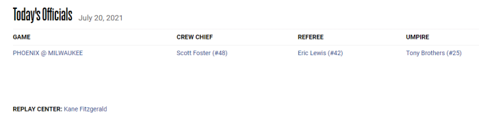 360直播吧讯 北京时间7月20日,NBA裁判官网正式公布太阳和雄鹿总决赛G6的裁判员名单,保罗克星斯科特-福斯特再当主裁,这意味着太阳危矣,雄鹿夺冠已经没有悬念吗?