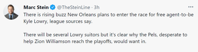 360直播吧讯 北京时间7月20日,NBA名记马克-斯坦恩报道称,联盟消息源透露,鹈鹕计划追求即将成为自由球员的洛瑞。预计多支球队会加入竞争,而鹈鹕想得到洛瑞的一大原因,在于他们急于帮助锡安杀入季后赛。