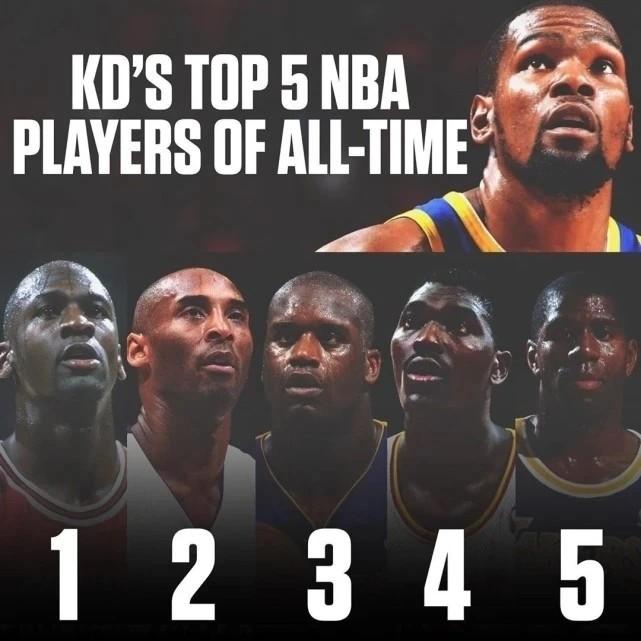 此前,杜兰特还曾公布自己心中的历史前五人,科比排在第二位,仅次于乔丹。奥尼尔、奥拉朱旺和魔术师分列第三至五位。当时,主持人问他:“前五球星是谁?”杜兰特确认了一下:“是指历史上吗?”得到确认后,他说道:“迈克(乔丹),显然,是第一……科比第二……沙克(奥尼尔)第三,哈基姆(奥拉朱旺)第四,然后是……魔术师。”