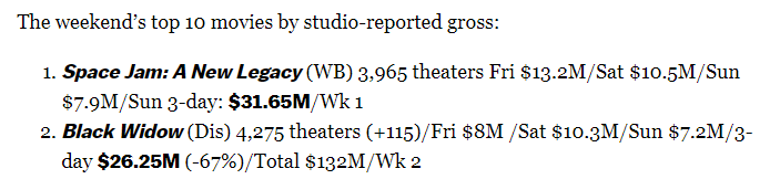 詹姆斯新电影首周票房比三月份上映的《哥斯拉VS金刚》首周票房(2820万美元)还高;也超越了乔丹在96年主演的《空中大灌篮》首周票房,当年乔丹电影首周票房是2750万美元,最终获得2.5亿美元的全球票房,时至今日,这部电影仍旧是一部经典。