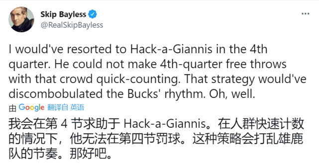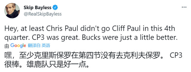 这场比赛赛后也引发了热议,名嘴skip直言“恭喜雄鹿本赛季夺冠”,他还补充扎心保罗:“至少他这一场没有消失”,另外,skip还质疑太阳主帅蒙蒂-威廉姆斯最后的策略,面对罚球不稳的字母哥,为什么不用“砍鲨战术”呢?