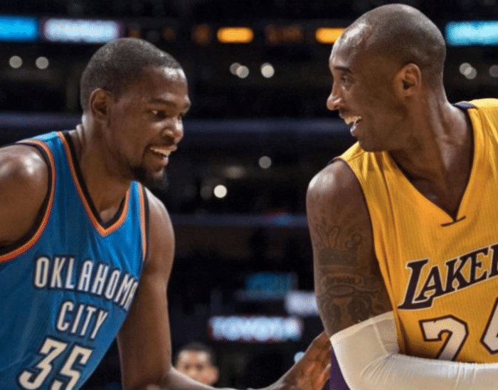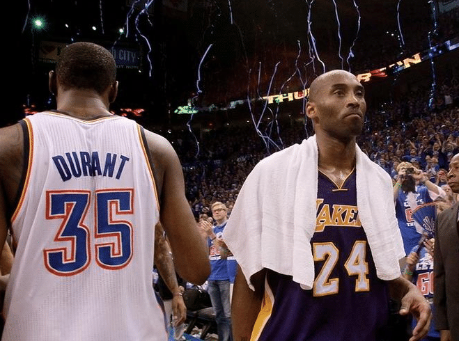 科比和杜兰特在进攻上各有千秋。但科比在防守端所输出的精力,却是杜兰特所不及的。科比只要上场打球,攻防两端都会做得极致。科比在比赛中经常去防守对方的箭头人物。也曾防的巅峰闪电战半场走步。科比职业生涯9次入选最佳防守一阵就是最好的证明。科比之所以影响力大,除了他风景美如画的进攻外,还有就是他对比赛的投入,和对胜利的偏执。科比的存在已经超越了篮球本身,他是一种精神,更是一种信仰!
