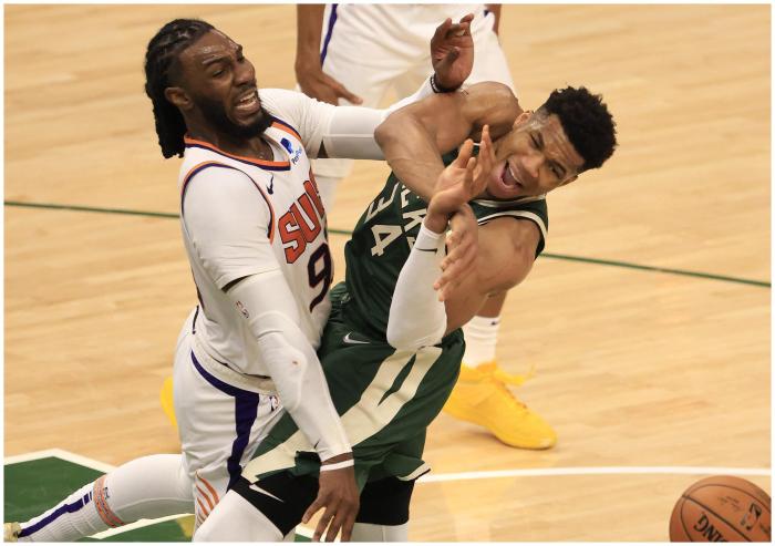 布克40分继续神奇发挥,保罗艾顿20+10算是常规操作,但问题是防不住对手,尤其是针对字母哥这一点!最好的防守人是艾顿没错,毕竟力量和身高在那放着,能尽可能限制字母哥突破直接得分,但如果字母哥像这场一样能拉出去命中跳投还怎么防?艾顿一旦出去,内线身高就变成劣势,篮板球被抢爆!