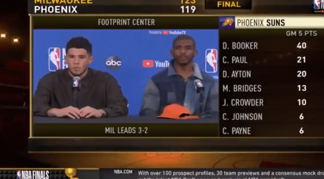 这样太阳就到了悬崖边,想要夺冠必须两连胜才行,比赛结束之后,砍下40分4板3助2断的布克和21分2板11助的保罗出席新闻发布会,他们的心情可想而知一定不会好,而其中一名记者的提问引发争议。