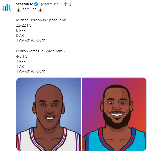 有趣的是,美媒statMuse对比乔丹和詹姆斯在电影中数据