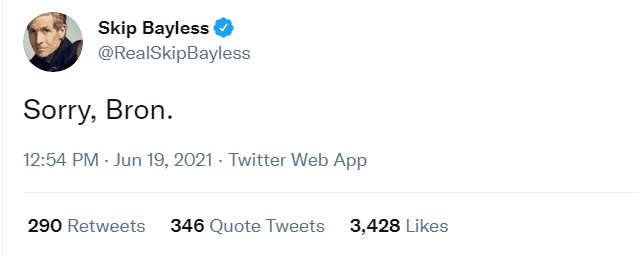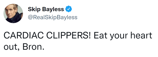 360直播吧讯 北京时间6月19日,快船131-119击败爵士,以4-2的总比分淘汰对手,51年队史首次晋级分区决赛。名嘴斯基普-贝勒斯是知名“詹黑”,也是一个多年的快船球迷。看到自己喜欢的球队实现历史突破,贝勒斯相当兴奋,连续更新社媒猛夸快船的同时,也没忘了讽刺一下詹姆斯。