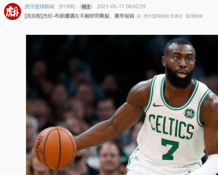 360直播吧讯 北京时间5月11日,据Shams爆料凯尔特人前锋杰伦-布朗遭遇左手腕舟月骨韧带撕裂,将缺席本赛季剩余赛程,这对于绿军来说是重大的打击!