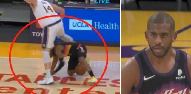 360直播吧讯 北京时间5月10日NBA常规赛继续进行,湖人主场123:110击败太阳。比赛过程中出现了让人印象深刻的一幕。比赛进行到第2节时,保罗和小加索尔发生对抗,保罗跌倒后小加索尔为了避免直接撞上保罗,选择跨过保罗。保罗随后抱怨此动作反而被裁判吹罚技术犯规,引来不少球迷的热议。