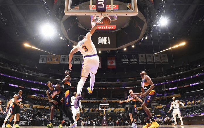 360直播吧讯 今天NBA常规赛结束了一场焦点战,湖人123-110击败太阳,拒绝被对手横扫的同时完成了复仇。这样他们结束连败的同时继续保持对于第六名开拓者的压力,两队都剩下4场比赛,湖人需要比对手多赢2场才能够直通季后赛。今天的这场比赛,詹姆斯、库兹马和施罗德都无法出战,浓眉哥单核带队表现抢眼,他全场砍下42分12篮板5助攻3抢断3盖帽,正负值+26全场最高,得分创纪录,个人赛季新高不论是进攻端还是防守层面,浓眉哥的表现都堪称完美,一肩挑带队取得胜利。