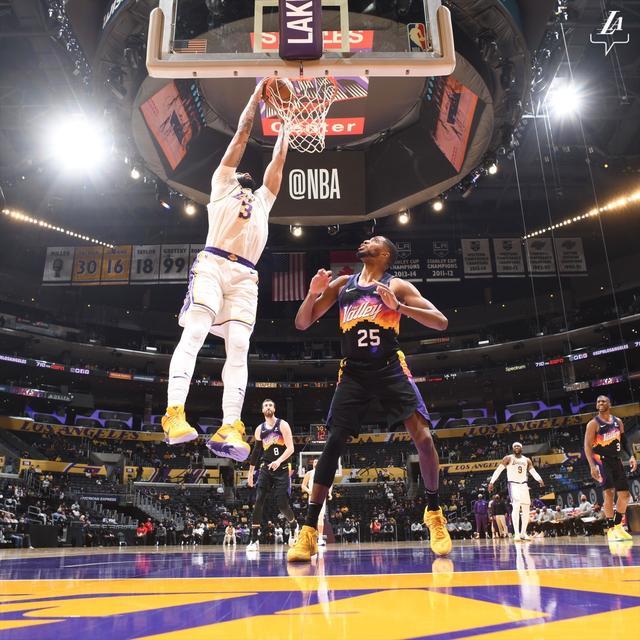 第四节,湖人队的松懈让太阳队得到了机会,发起了疯狂的反击,可是关键时刻,投篮、地板抢球,篮板、封盖,浓眉哥像无处不在的蜘蛛侠,太阳队反击的号角硬生生被摁了下来,全场比赛,浓眉哥拉倒了42分、12篮板、5助攻、3抢断、3盖帽,他用出色的表现将数据栏填得满满当当的,湖人队也以123:110战胜了太阳队。