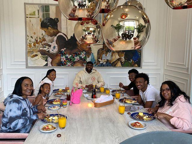 格洛里亚感谢詹姆斯组织聚餐,更新动态Ins,晒出全家福并且写道:在母亲节这一天,和全家一起吃饭,谢谢你,勒布朗,让这一天对我们如此特别。