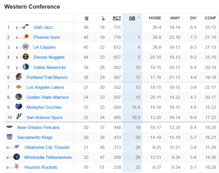 排名卡位战,独行侠110比90大胜骑士,东契奇带队稳固第5的位置,这场比赛独行侠前两节就取得25分领先,比赛提前失去悬念。独行侠成绩达到39胜28负,位置稳固。湖人和开拓者对决,首节湖人只拿到22分,落后12分,利拉德单节12分,次节波普连续拿到11分,带队追到只差4分,第三节湖人一度反超,但是开拓者稳住局势再次领先,末节两队胶着,决胜时刻利拉德和浓眉对攻三分,库兹马被吹干扰球,利拉德的三分再进,开拓者拉开分差。浓眉攻防俱佳追分,库兹马三分不进,开拓者连续罚球得分,开拓者106比101拿下比赛,利拉德38分,浓眉36分,湖人下滑到第7位,打附加赛成为大概率事件。