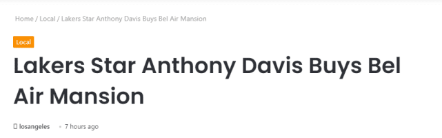360直播吧讯 北京时间5月8日,据Therealdeal网站报道,湖人球星安东尼-戴维斯已经在洛杉矶的顶级富人区(贝莱尔)购置了一套配备篮球场和游泳池的豪宅,消息源透露,交易价格是3200万美元。