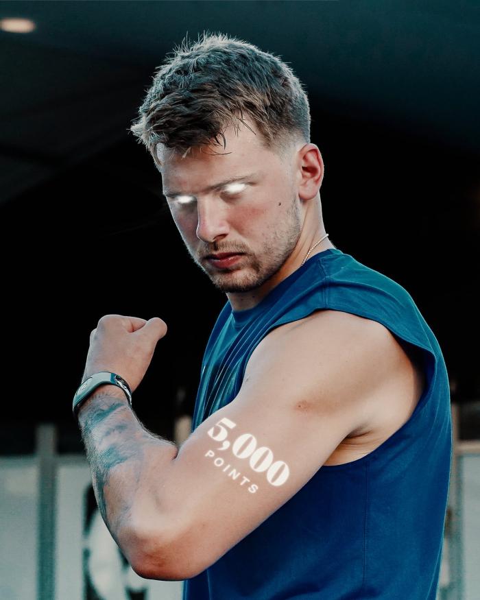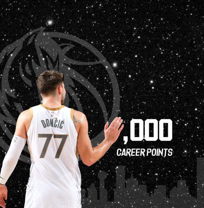独行侠官方还晒出东契奇两眼发光的特效照,东契奇手臂上印着“5000分”的字样。