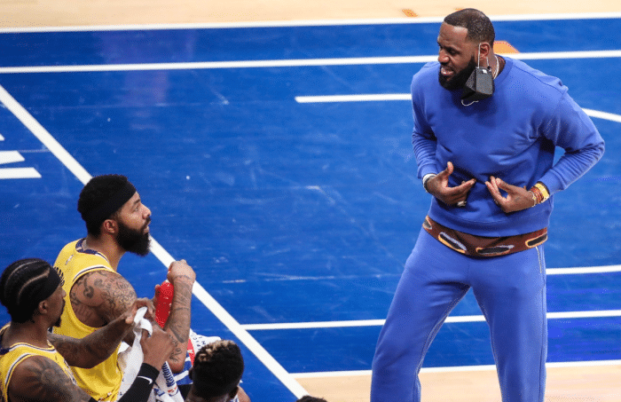 詹姆斯这次受伤就挺尴尬的,打老鹰时脚踝高位扭伤,退赛前还投进了一记三分,确保自己连续得分场次保持上双。复出时的时间选择,随队记者特纳曾透露打奇才时,湖人计划让老詹出战,但是没有。势头生猛的奇才碾压了湖人,而面对国王这个软柿子,老詹复出了,结果国王小年轻根本不给国王一点面子,三下五除二撕掉遮羞布。对阵猛龙,老詹第四节又受伤,湖人全场被压制。最可气的是,当老詹休战时,湖人竟然能爆冷击败掘金!当然,面对强大的快船,他们肯定无法赢下对手,半场输23分,近两年最尴尬纪录,全场输24分,就连老詹都不愿意在场观战。