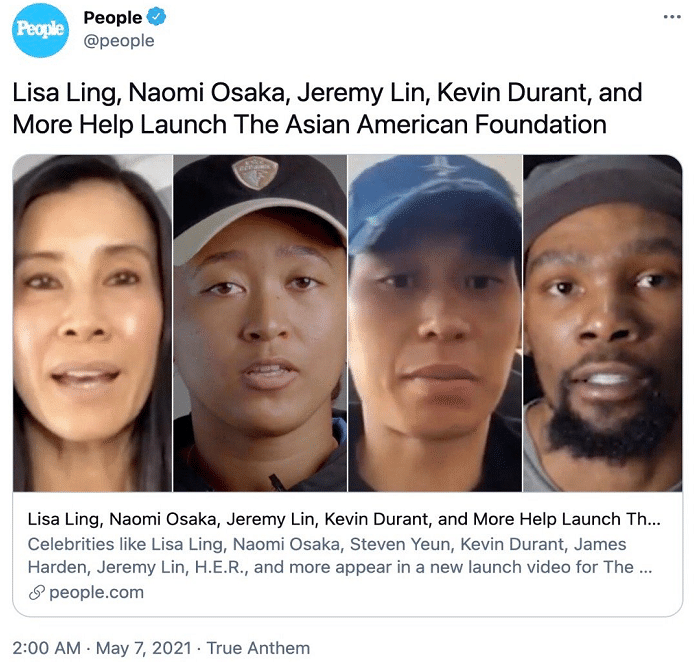 360直播吧讯 前段时间外媒报道篮网老板蔡崇信联合沃尔玛、美国银行和NBA联盟等一起成立亚裔基金会,其中蔡崇信和雅虎联合创始人杨致远等人承诺投入1.25亿美元,沃尔玛和NBA联盟等筹集1.25亿,加起来是2.5亿美元,用于支持亚裔社区发展、改变外界对于亚裔的看法,这样的举动收获了外界一片的赞誉。而现在传来消息,凌志慧、大阪直美,林书豪以及凯文杜兰特协助成立了亚裔基金会。