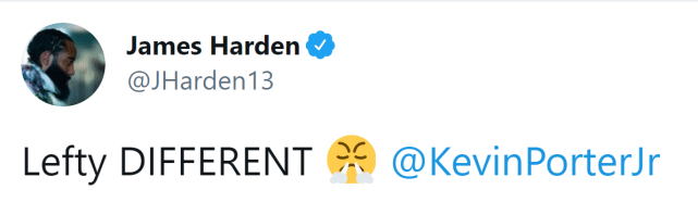 数据网站StatMuse发文调侃两位球星至少有五个共同点:其一,都是左撇子球员;其二,名字都是5个字母,Kevin和James;其三,姓氏都是6个字母,Porter和Harden;其四,都因逛夜店被罚了50000美元;其五,都砍下了至少50分10助攻的数据,不可思议。