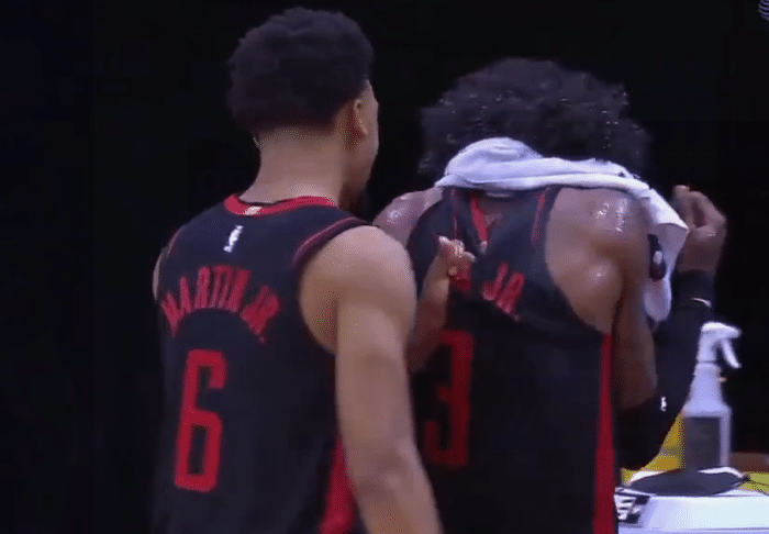 此外,小波特(21岁)也超越詹姆斯(23岁)成为NBA历史上最年轻的50+10先生。比赛结束后,他的队友小马丁,更是朝着小波特浇水庆祝。赛后,主帅赛拉斯也称赞小波特,他表示:“我为他感到自豪,这个赛季我们很少有这样振奋人心的时刻,今晚我为这个孩子感到由衷骄傲。”