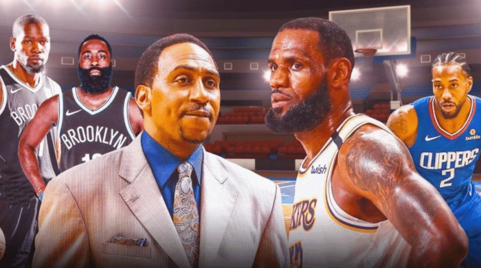 美国名嘴斯蒂芬·A·史密斯发推晒出了自己今日参加节目的照片,并附文“我心目中的GOAT永远是乔丹,但是如果詹姆斯击败小卡、乔治以及隆多领军的快船,之后挑落篮网三巨头,我做出承诺,从此我对他服服帖帖,在他职业生涯剩余的时间里永不再说他一句坏话。”